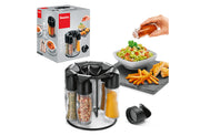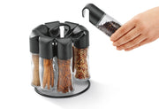 Glas / Kunststoff, mit 8 luftdicht verschließbaren Glas-Behältern (4 x 88 ml, 4 x 72 ml) und 16 austauschbaren Streueinsätzen, Drehscheibe mit Griff· Ø 15 cm, H 16 cm