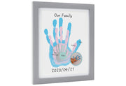 Holz, Inhalt: 1 x Bilderrahmen, 4 x Farben (Blau, Grau, Rosa, Minzgrün), 1 x schwarzer Marker, 1 x Staffelei, 1 x Sägezahnaufhänger, 1 x weiße Matte, tauchen Sie einfach Ihre Hände der Größe nach hintereinander in die Farbe Ihrer Wahl und drücken Sie sie auf die mitgelieferte weiße Matte·grau (BxHxT): ca. 25x30x1,6 cm
