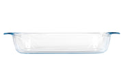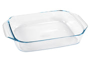Borosilikatglas, temperaturbeständig von -40°C bis 180°C, kratzfest, hygienisch, mikrowellengeeignet, spülmaschinenfest, mit rutschsicheren Noppengriffen, ohne Deckel· 4,0 l, (LxBxH): 39x25x7 cm