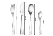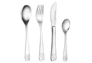 Edelstahl, 1 Kinder-Menümesser 18,5 cm, 1 Kinder-Menügabel 17,4 cm, 1 Kinder-Menülöffel 17,1 cm, 1 Kinder-Dessertlöffel 13,6 cm·Silberfarben (LxBxH): 32x25x19 cm