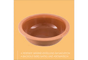 Dank der runden Form ist die RÖMERTOPF Backform ideal für die Herstellung von klassischen runden Broten und Kuchenspezialitäten. Die poröse Oberfläche des Materials sorgt dafür, dass die Feuchtigkeit gleichmäßig verteilt wird, was zu einer knusprigen Kruste und einem weichen, saftigen Inneren führt. Sie werden den Unterschied schmecken!