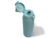 Edelstahl, 90% Post-Consumer-Recycling, ausgestattet mit "One Top" (Ein-Hand)-Verschluss, vakuumisoliert, kupferbeschichtet, doppelwandig, hält die Getränke 72 Stunden kalt und 10 Stunden heiß (bei 1,0 l)·morning blue 750 ml, Ø 7,3 cm, H 27 cm