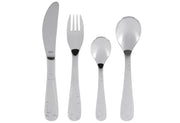 Edelstahl, Inhalt: 1 x Messer 18 cm, 1 x Gabel 16 cm, 1 x Teeöffel 13 cm, 1 x Löffel 16,5 cm