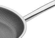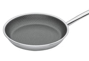 5-Lagen Mehrschichtmaterial Außenschicht aus, induktionstauglichem Edelstahl 18/0, innen, Edelstahlschicht 18/10 und dreifachem, Aluminiumkern. 2-fach Antihaftbeschichtung auf, mineralischer Basis für höchste Abriebfestigkeit, und optimierten Antihafteffekt für lange, Lebensdauer. PFAS-frei., Erhabene Wabenstruktur aus Edelstahl. Geeignet, für Pfannenwender aus Metall., Optimale Wärmeverteilung., Geeignet für sämtliche Herdarten inklusive, Induktion. Backofenfest., Geschlossener Topf- und Schüttrand., Ø 20 cm / Höhe: 3,3 cm H 3,3 cm, Ø 20 cm·Fachhandel exklusiv