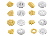 Edelstahl / Kunststoff, Inhalt: 1 x Presse, 8 x Formscheiben, 8 x verschiedene Tüllen, komfortabler Druckmechanismus, mit Rezepten