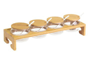 Glas / Bambus / Keramik, Inhalt: 1 x Halter, 4 Gläser mit Bambusdeckel, 4 x Keramiklöffel, für den Einsatz in der Gastronomie oder Zuhause, zum stilvollen Servieren von Marmeladen, Saucen, Gewürzen etc., praktische eingearbeitete Ablage für die Deckel, Bambus mit lebensmittelechter Spezialbeschichtung für eine fett- und wasserabweisende Oberfläche 200 ml, (LxBxH): 38,5x12,5x11,3 cm