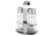 Glas/Edelstahl, Inhalt: Salz-, Pfefferstreuer, Ständer mit Tragegriff, Fassungsvermögen 2 x 40 ml, spülmaschinengeeignet (LxBxH): 8,6x5,5x11,4 cm