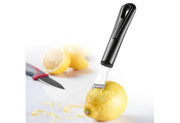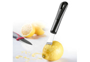 Edelstahl / PP, geschärfte Lochklingen, Fadenschneider, schneidet feine Streifen aus Fruchtschalen, Schokolade, etc., spülmaschinengeeignet·schwarz (LxBxH): 21,5x7,5x2,5 cm